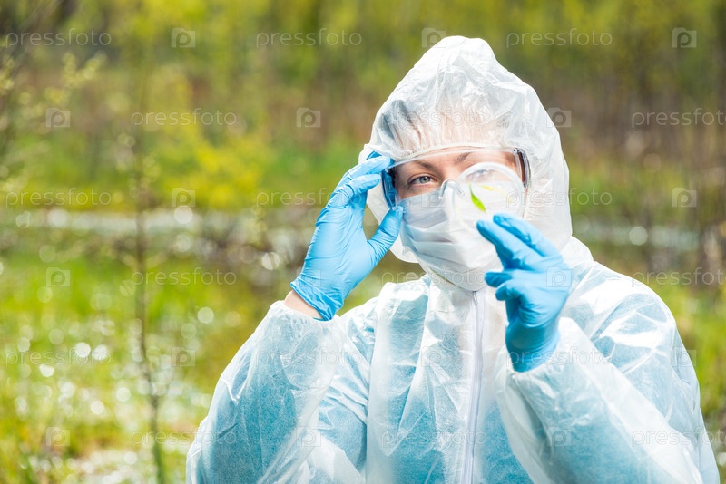 Химик исследует зараженные растения из лесного озера
