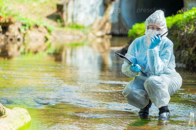 Портрет ученого с рации и блокнотом на фоне реки