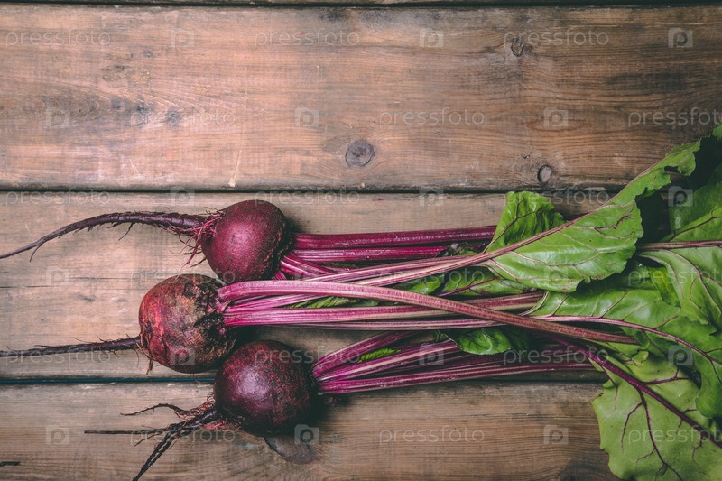 Куча свежей свеклы на деревянном деревенском столе. Копируйте пространство. Здоровая еда. Сырые овощи