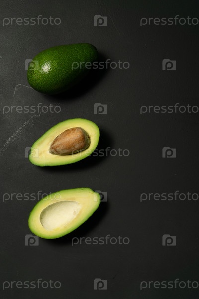Свежий, сырой авокадо нарезан на черном