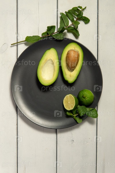 Авокадо с лаймами на белом деревянном бэкгроуне