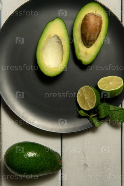 Авокадо с лаймами на белом деревянном бэкгроуне