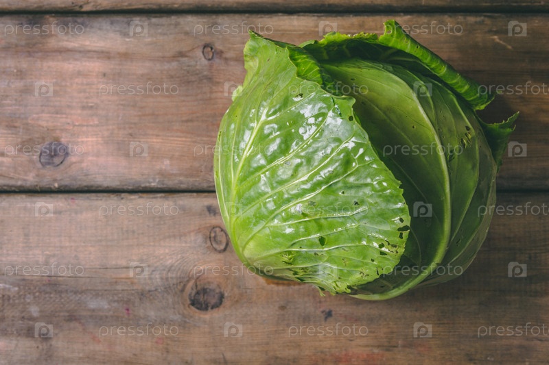 Свежая капуста на деревянном деревенском столе. Копируйте пространство. Здоровая еда. Сырые овощи