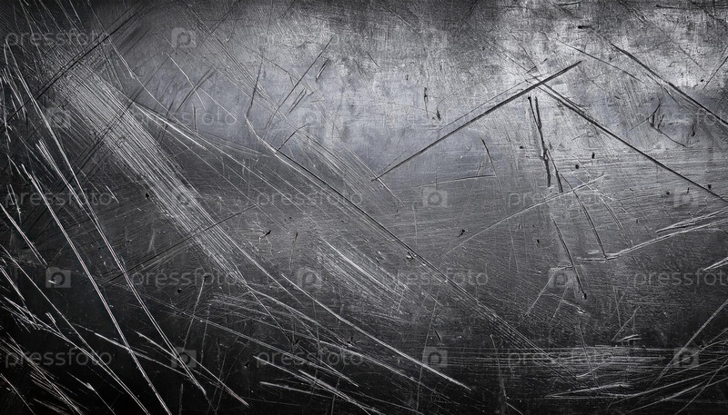 Замыкание поцарапанной металлической поверхности с замысловатыми деталями линий и текстур, отражающих свет под определенными углами
