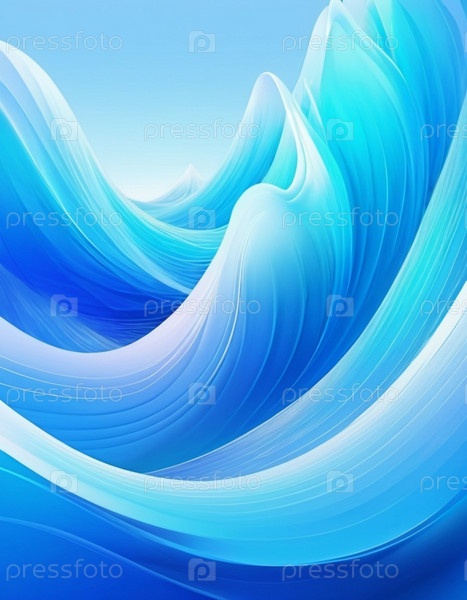Плавучие 3D-синие волны морского океана создают абстрактное представление о динамике жидкости, вызывая спокойствие и глубину в минималистическом дизайне, который усиливает цифровое творчество