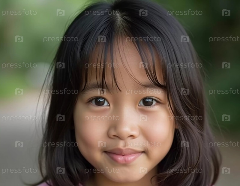 Веселая девушка стоит на открытом воздухе в Таиланде, в окружении пышной зелени. Ее черные волосы обрамляют ее лицо, когда она улыбается, наслаждаясь теплым, солнечным днем и красотой природы. Генерирующий ИИ