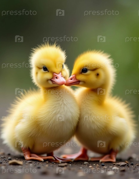 Очаровательные желтые утки стоят вместе, нежный солнечный свет освещает их пушистые перья. Симпатичные желтые утки собрались вместе на мягкой земле в естественной обстановке на открытом воздухе. Генеративный ИИ