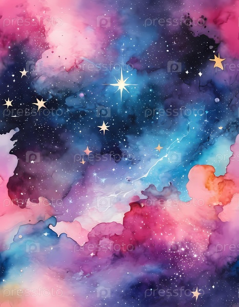 Захватывающее отображение цветов заполняет космос, где яркие розовые и блюзовые кружатся вместе, демонстрируя мерцающие звезды, разбросанные по всей темноте космоса