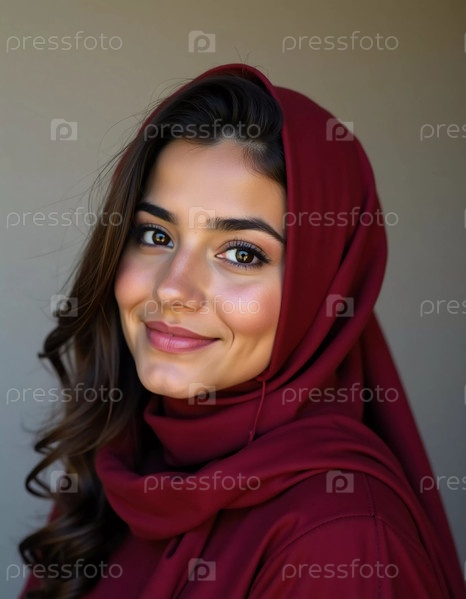 Молодая мусульманка излучает радость, улыбаясь в камеру. Одетая в богатый бордовый хиджаб, который обрамляет ее лицо, она воплощает дух Газы с элегантностью и изяществом