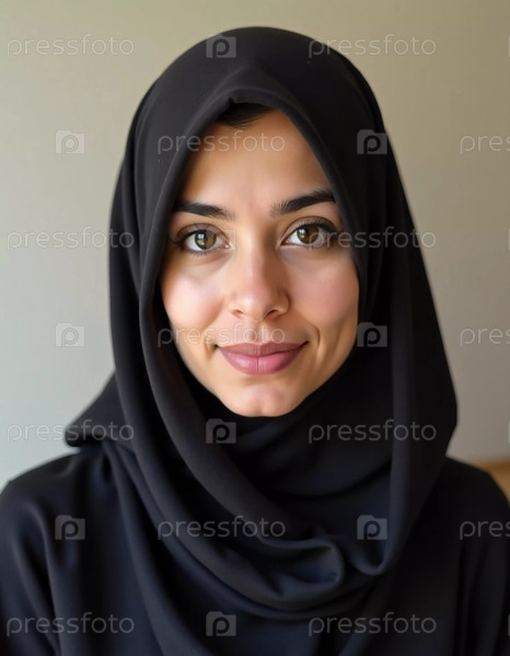 Молодая женщина из Газы с безмятежным выражением лица демонстрирует свою уникальную красоту в темном хиджабе. Ее глаза передают силу и устойчивость, отражая ее культуру и идентичность