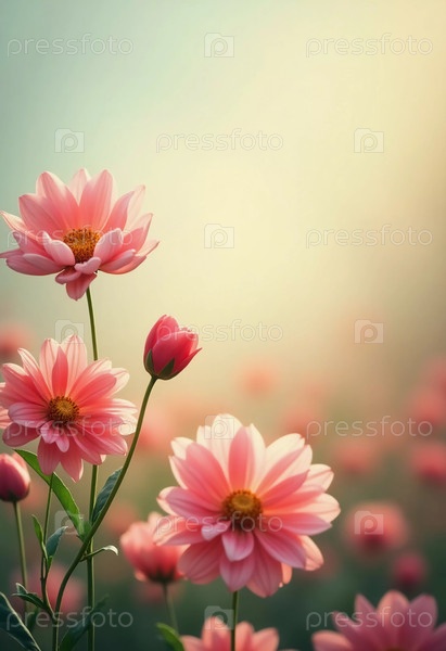 Нежные розовые цветы стоят высоко на нежном, размытом фоне, приглашая моменты покоя и самоанализа среди красоты природы во время заката Генеративный ИИ
