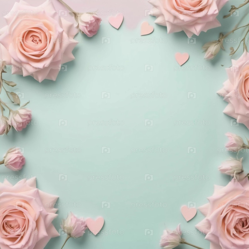 Элегантный фон имеет мягкие пастельные оттенки с цветущими розами и формами сердца, создавая идеальный холст для любовных нот и особых моментов Generative AI