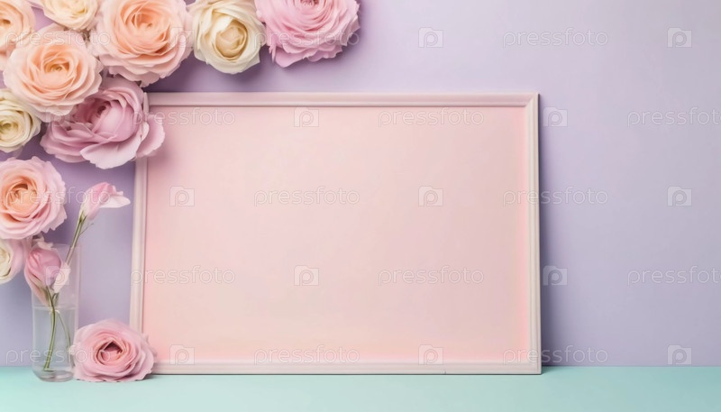 Нежные пастельные розы обрамляют пустую карточку мягкими оттенками розового цвета, идеально подходят для выражения эмоций или обмена особыми моментами на романтическом собрании или сердечном торжестве Generative AI