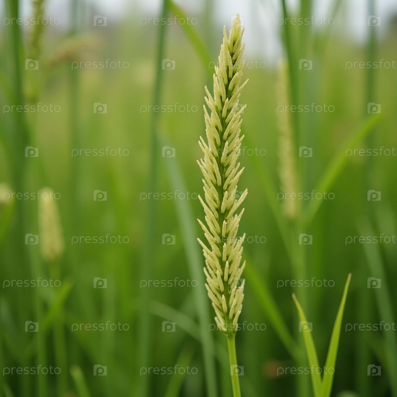 В самом сердце безмятежного пейзажа над зеленым пространством возвышается один рисовый стебель. Облака зловеще задерживаются, намекая на приближающийся шторм, в то время как природа процветает