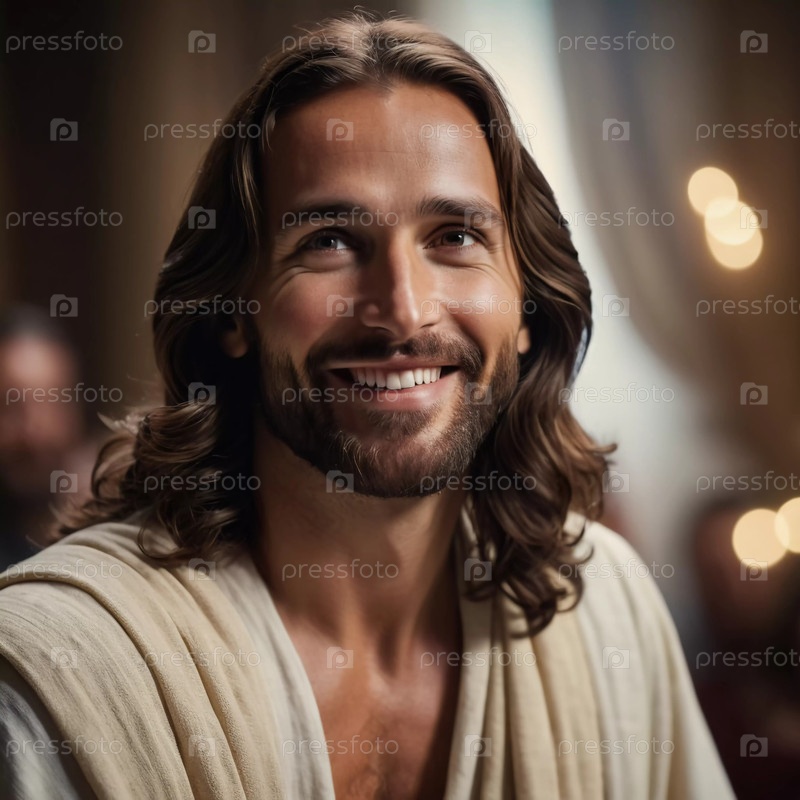 Теплая, приглашающая атмосфера окружает фигуру, излучающую радость и сострадание, воплощающую сущность мира и надежды. Свет танцует мягко, создавая божественное свечение Генеративный ИИ