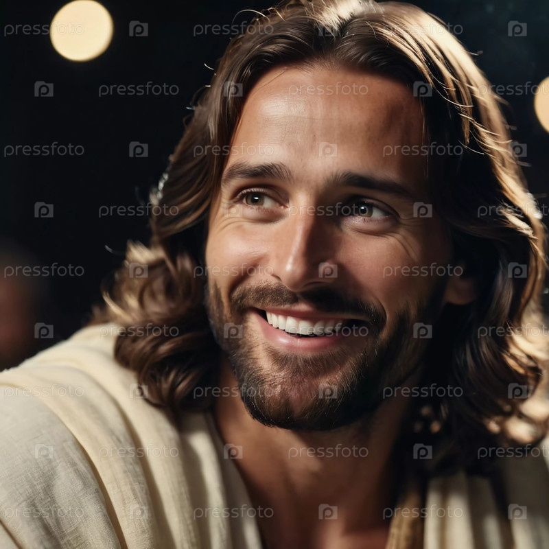 В безмятежной атмосфере, освещенной мягким свечным светом, фигура выражает подлинную радость и тепло, излучая чувство божественной любви и связи, вдохновляя окружающих на создание искусственного интеллекта