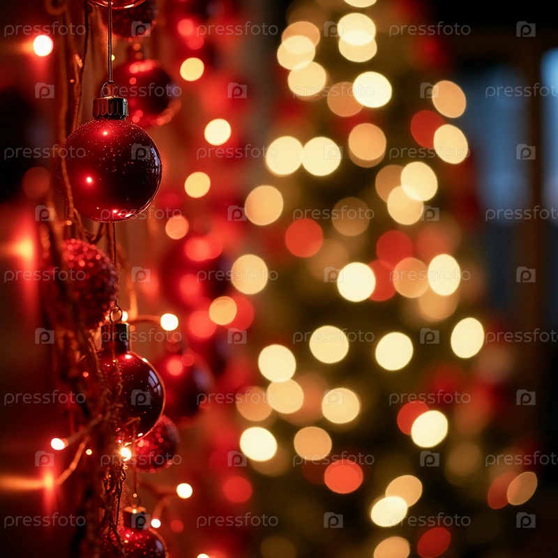 Мигающие огни и ярко-красные украшения украшают рождественскую елку, создавая теплую и праздничную атмосферу для радостного праздника Generative AI