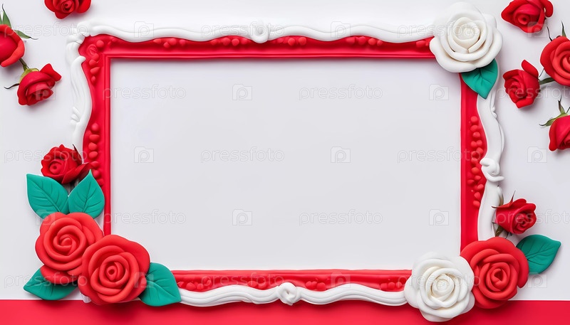 Яркий красно-белый декорированный каркас с розами окружает пустое пространство. Эта настройка идеально подходит для демонстрации творческих проектов или специальных сообщений. Генерирующий ИИ