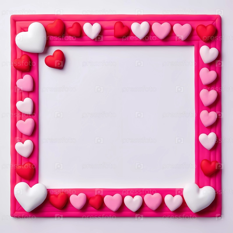 Декоративные сердца различных размеров в красном, розовом и белом создают игривую рамку вокруг пустого белого пространства, идеально подходящую для личных заметок или романтических сообщений для особых случаев. Генеративный ИИ