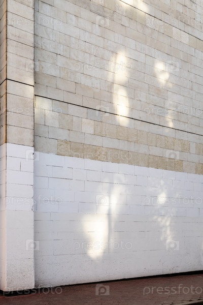 Кирпичная стена городского дома окрашена в белый цвет снизу