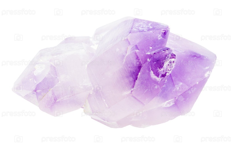 Грубые кристаллы аметиста минерал, выделенный на белом