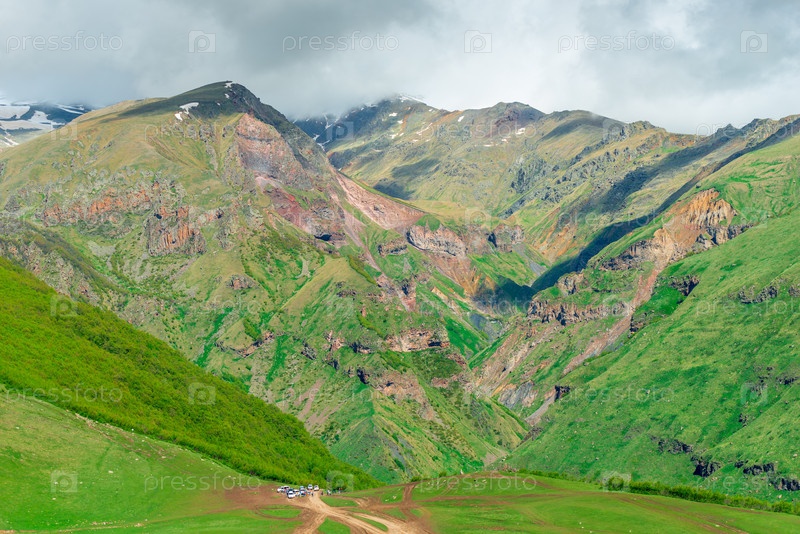 Красивые высокие горы Кавказа в Грузии на грузинской военной дороге