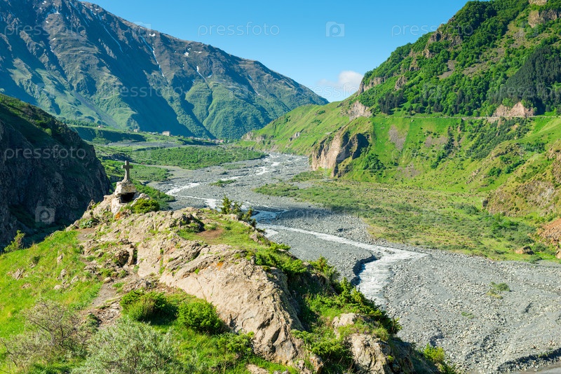 Зеленые высокие горы Кавказа в Грузии красивые пейзажи