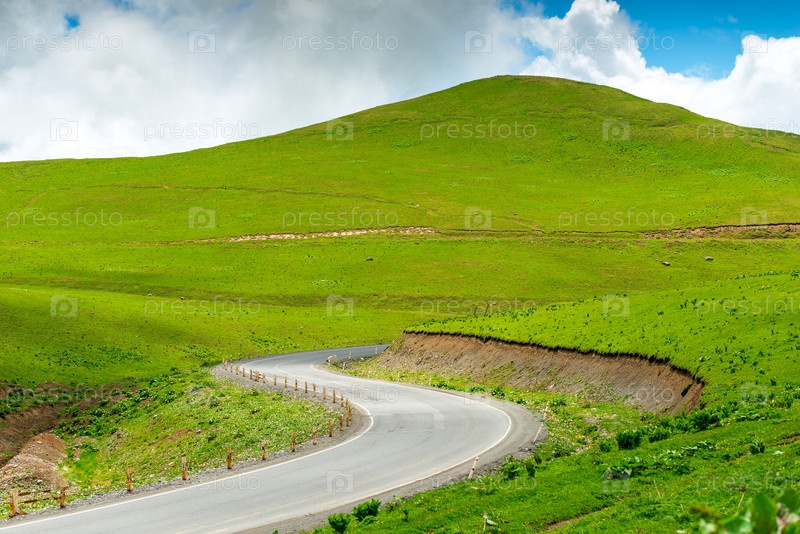 Извилистая автомобильная Грузинская военная дорога в живописном месте в горах Кавказа, пейзаж Грузии