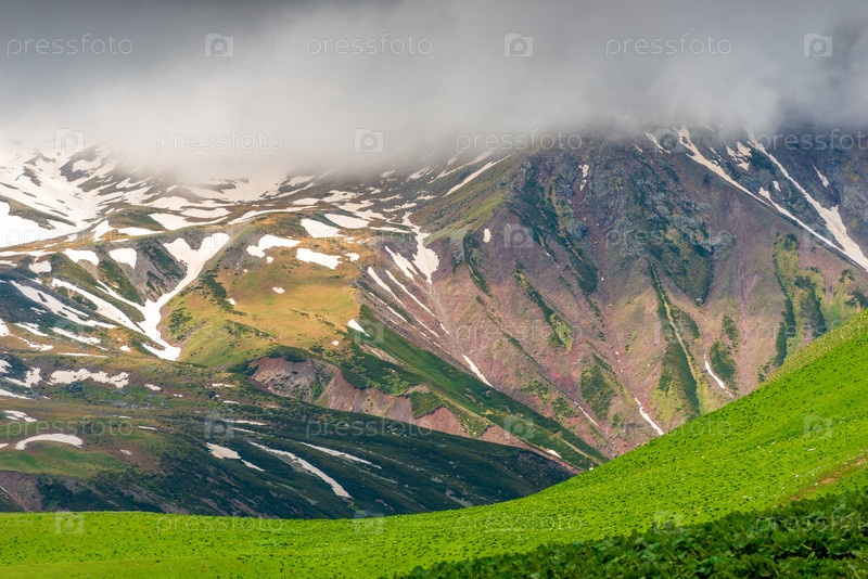 Горы и облака, живописный пейзаж Грузии, путешествие по Военной дороге Грузии
