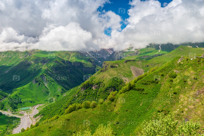 Вид на живописные зеленые горы Грузии, Кавказ