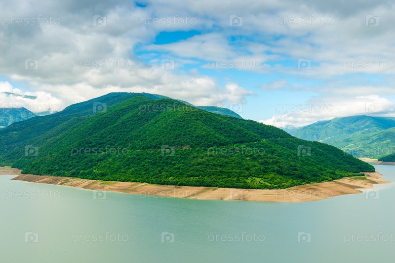 Красивый живописный вид на реку и горы на Кавказе, Грузия