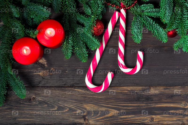 Кондитерская палочка и композиция свечей рождественский концепт top view