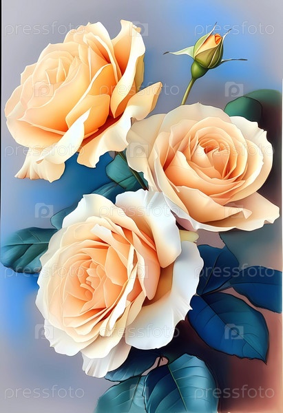 Яркая романтическая живопись отличается пышным расположением красиво цветущих роз в различных оттенках, захватывая сущность любви и природы в красочной обстановке сада при дневном свете. Генерирующий ИИ