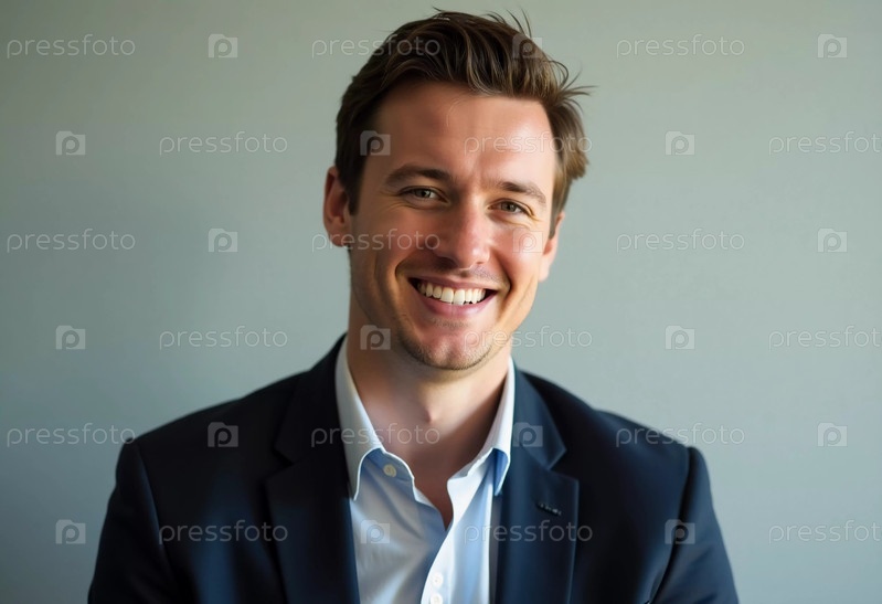 Яркое и теплое выражение на шведском мужчине в специально подобранном костюме, небрежно наклонившись вперед с уверенной улыбкой, запечатлев момент радости в современной офисной обстановке в дневное время