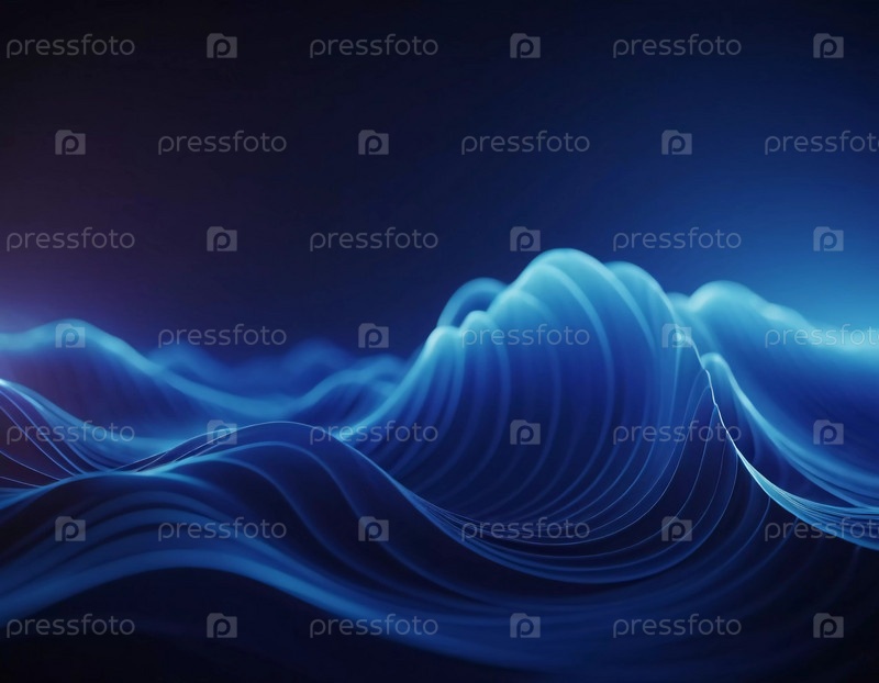 Плавучие 3D-синие волны создают абстрактное представление о динамике жидкости, вызывая спокойствие и глубину в минималистическом дизайне, который усиливает цифровое творчество