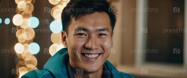 Молодой человек 25 лет с яркой улыбкой стоит на улице, в окружении оживленной деятельности. Житель Казахстана, милый мужчина 25 лет. Взрослый человек, уверенный в своих силах. генерируемый