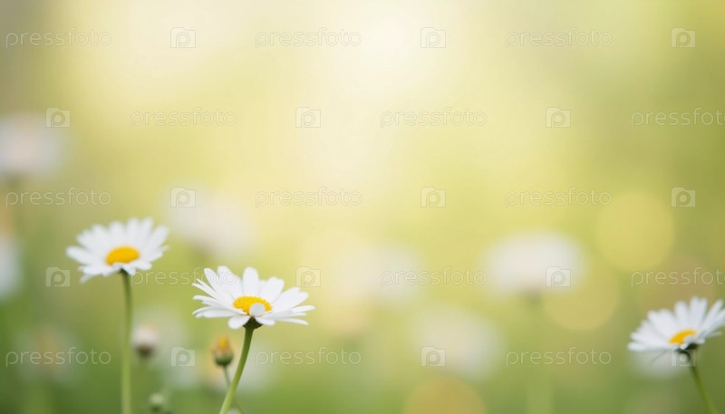 Цветы Дейзи цветут мягко в естественной обстановке, усиленной прозрачным пространством для текста. Солнечный свет создает нежный эффект боке, добавляя тепло. Аромат, вкус, запах ромашки. Генеративный ИИ