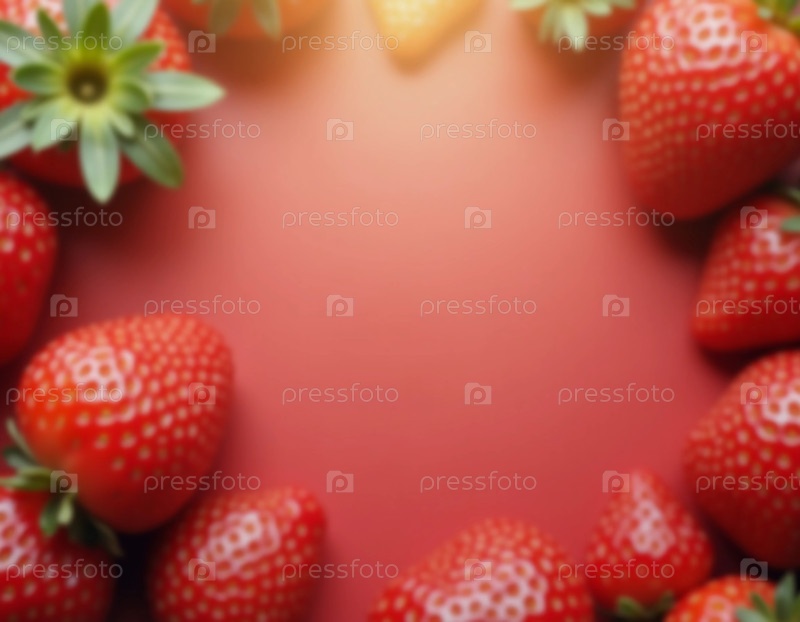 Сочная красная клубника заполняет раму, пухлую текстуру и свежий внешний вид. Это восхитительное расположение вызывает ощущение летней свежести и сладости. Аромат, запах, вкус, ароматизация. Размытое изображение.Генеративный ИИ