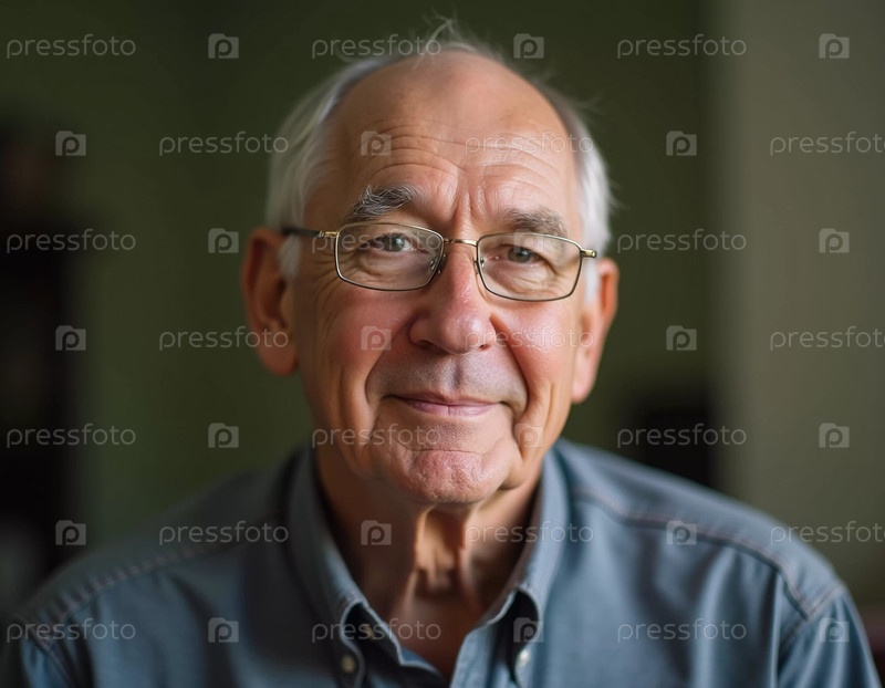 Зрелый мужчина с седыми волосами, житель США, мягко улыбается. Теплое освещение создает уютную атмосферу. Спокойный, уверенный взгляд. Опыт, профессионализм и интеллект в глазах. Генерирующий ИИ