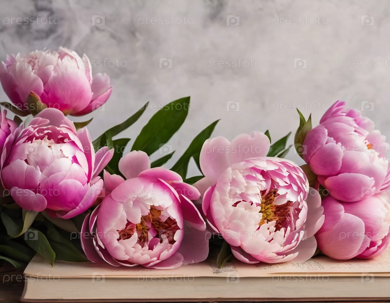 Розовые пионы цветут ярко, их лепестки деликатно развернуты. Расположенные на открытой книге, они вызывают чувство вечной красоты и спокойствия, идеально подходящей для любителей природы
