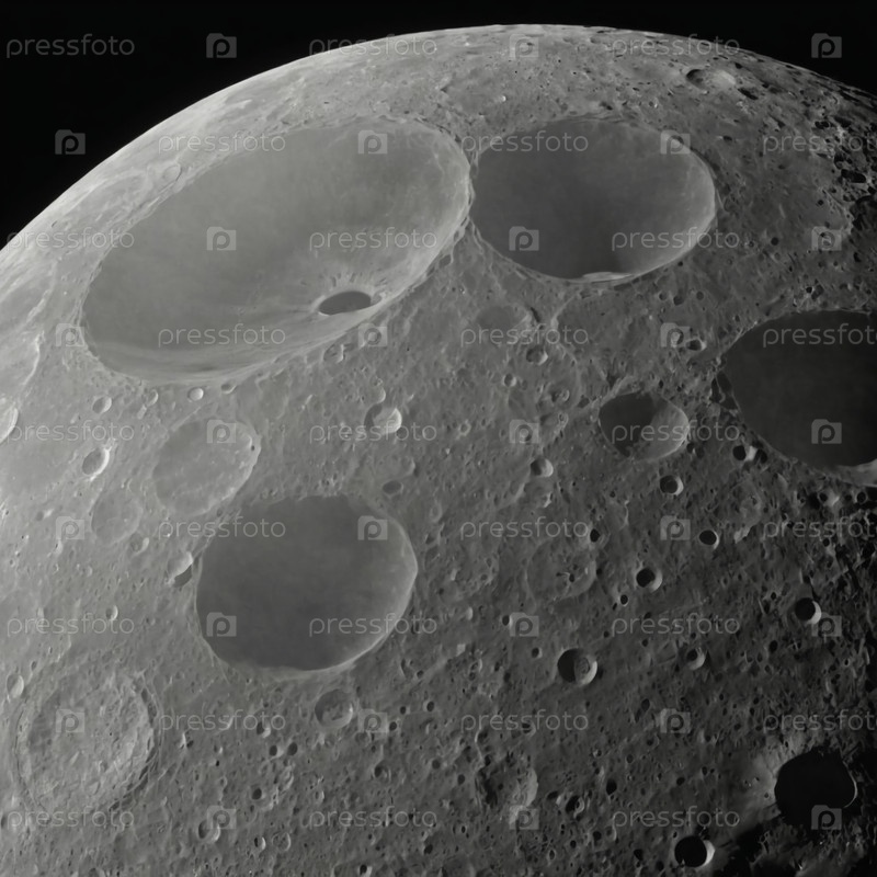 Поверхность Луны показывает древние кратеры, замысловато вырезанные с течением времени, окруженные на фоне темноты, которая подчеркивает их уникальные текстуры и образования