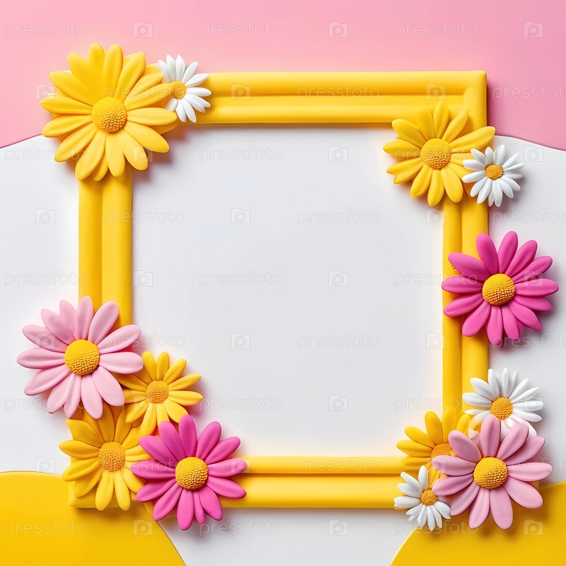 Яркие и веселые ромашки в оттенках желтого и розового элегантно граничат с чистым, пустым пространством, вызывая радость и бесконечное творчество на пастельном фоне
