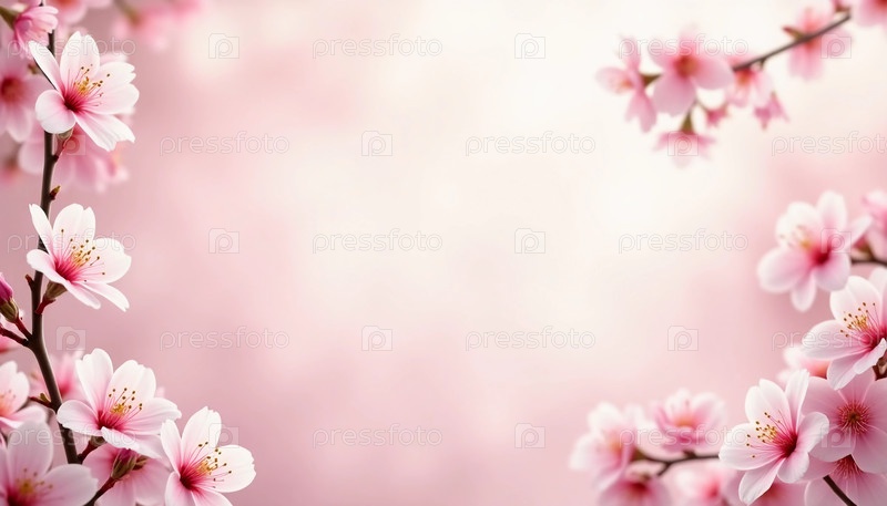 На нежном розовом фоне скопления цветов сакуры цветут с элегантной точностью. Каждый лепесток демонстрирует тонкие оттенки розового, захватывая суть весны и обновления. Композиция вызывает восхищение и рефлексию, так как мягкие оттенки гармонично сливаютс