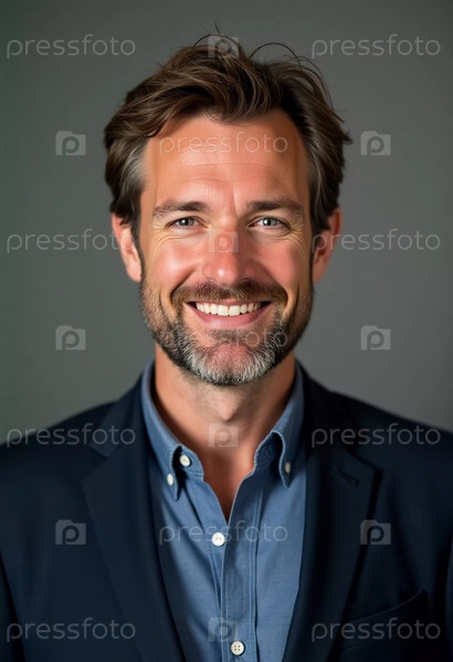 Веселый шведский мужчина со светлыми волосами демонстрирует свою теплую улыбку, одетый в изысканный повседневный наряд, окруженный привлекательной и элегантной атмосферой