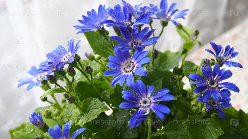 Гибридный периклис Mondala Tenerife, Hybride cineraria или Common ragwort цветущее растение семейства Asteraceae. Он возник как гибрид между Pericallis cruenta и lanata. Цветки в горшке