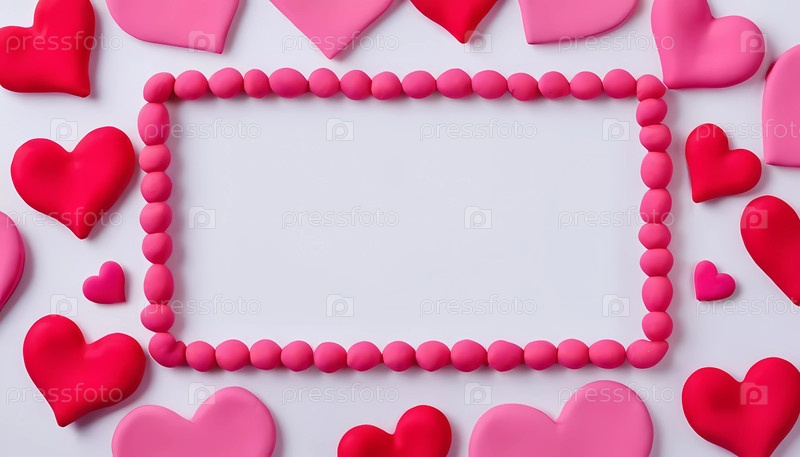 Игривый каркас на тему сердца демонстрирует множество красных и розовых сердец на мягком розовом фоне, обеспечивая идеальное пустое пространство для настройки и творчества. Генерирующий ИИ