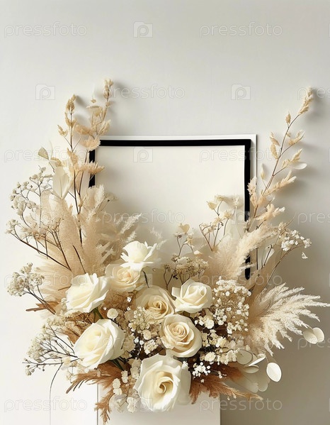 Нежные гипсофильные цветы и белые розы объединяются в гармоничное расположение, идеально подходит для освещения интерьеров или празднования особых моментов с изяществом Generative AI