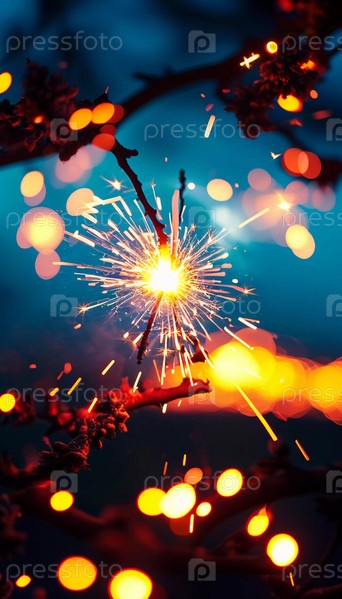 Яркие искры вырываются из ветвей в завораживающем дисплее, освещая окрестности теплом и цветом. Космический танец света разворачивается в безмятежной атмосфере Генеративного ИИ