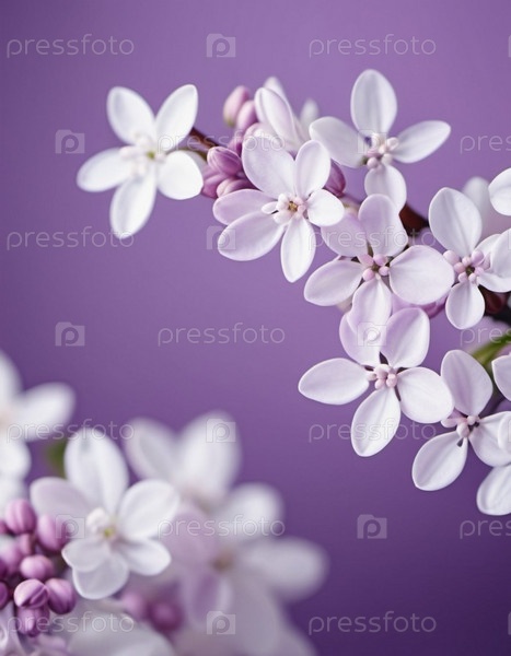 Выстрел нежных цветов сирени, лепестков мягкого, пастельного фиолетового и белого, на размытом фоне. Изображение фиксирует сложные детали цветов, демонстрируя их нежную красоту. ИИ