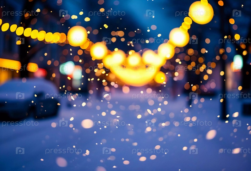 Зимние мерцающие огни, захватывающие дух Рождества и Нового года, когда мягко падает снег, создают волшебный эффект боке, который превращает городской пейзаж в праздничную страну чудес. Генерирующий ИИ